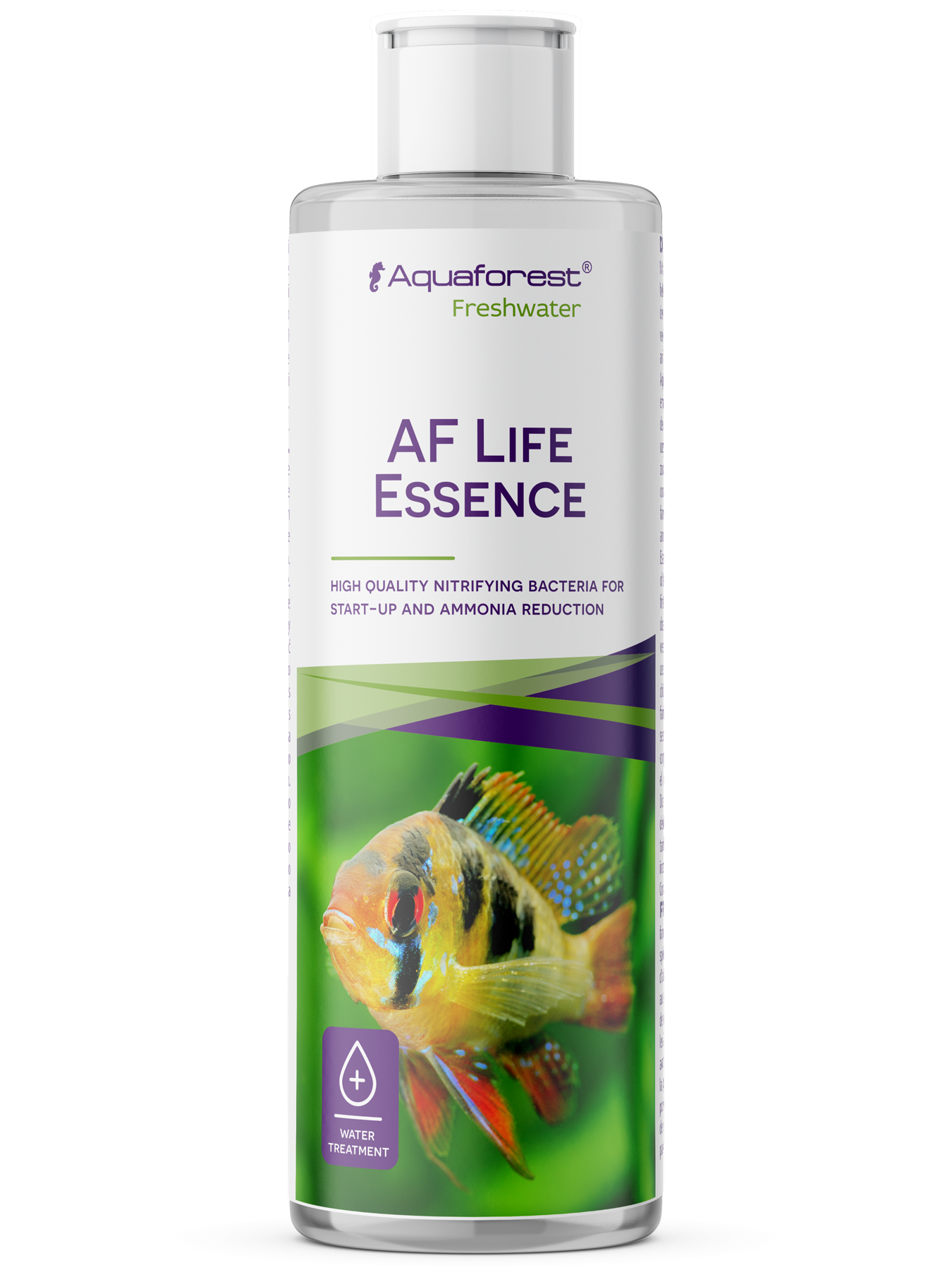 High quality agent containing nitrifying bacteria from the Nitrospirae and Nitrobacter families. Specially selected bacterial strains accelerate the removal of ammonia and other toxic organic compounds. Recommended for newly established aquariums to start the nitrogen cycle and create a biologically friendly environment for the inhabitants of the aquarium. It is also beneficial to use during regular water changes for maintaining a biological balance. The use of AF Life Essence at the start of the aquarium significantly speeds up the process of its maturation. AF Life Essence is perfect as a supplementation of bacterial flora after filter cleaning and treatment of fish with strong bactericidal preparations.