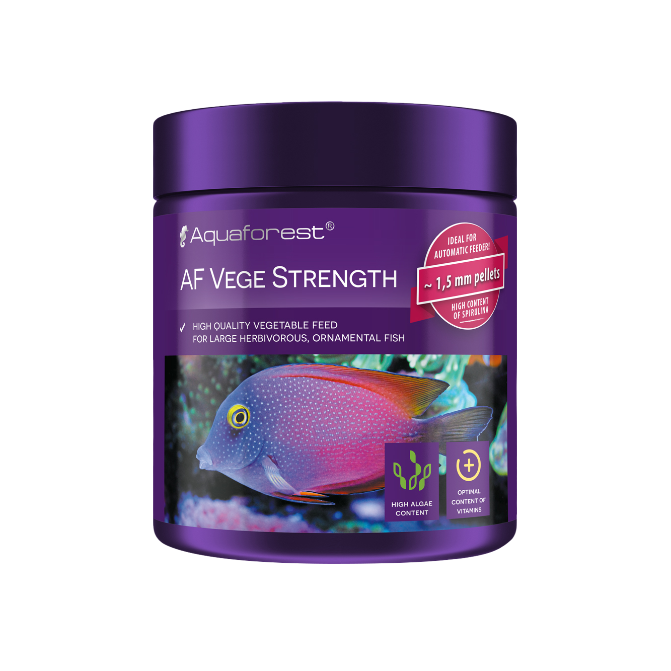 Highly digestible plant feed for large herbivorous ornamental fish. The high fiber content regulates the digestive tract, protecting the Intestines of herbivores fish against inflammation. AF Vege Strength, thanks to the content of Spirulina , will enhance the coloration of fish. We recommend feeding in small portions several times daily. Product intended for use in aquariums only. Not suitable for Human consumption. Keep away from children.