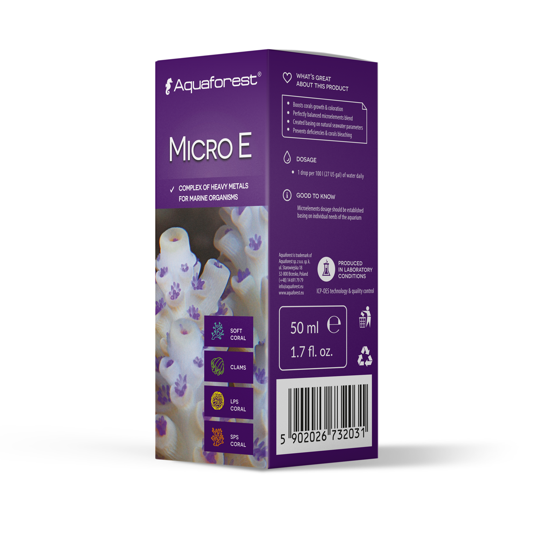 Supplement contains concentrated heavy metals – manganese, vanadium, zinc, nickel, iron, chromium, cobalt & copper. Mixture of trace elements necessary for all marine organisms. DOSAGE: 1 drop per 100l(27 US gal.) daily. Carefully selected ratio for optimal conditions. 1 drop per 100l(27 US gal.) daily.
