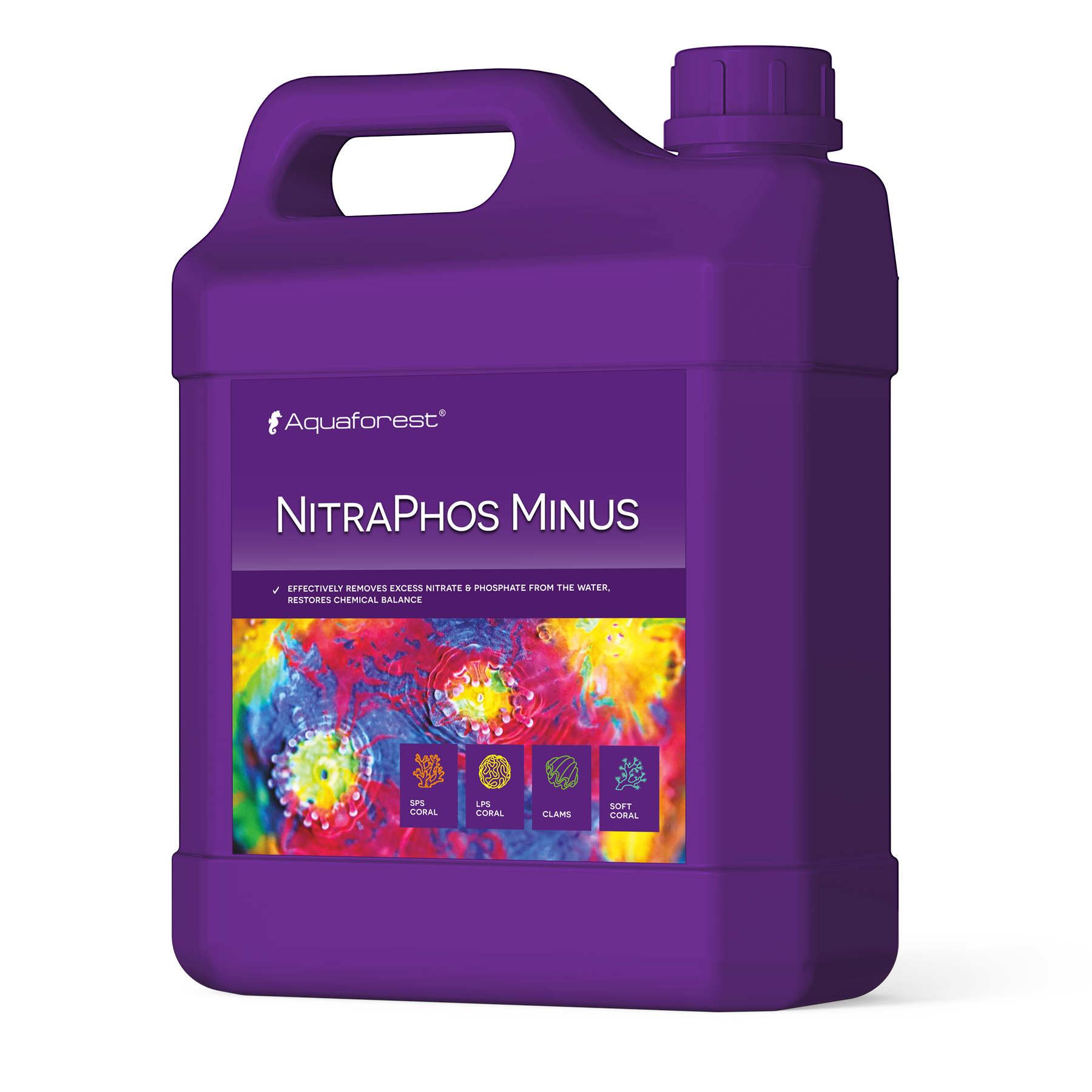 NitraPhos Minus is a unique formula that aims to biologically remove nitrate, nitrite and phosphate from the aquarium. It activates the metabolism in various types of bacteria, which are responsible for the management and removal of excess nutrients. Thanks to the special composition of multiple forms of organic carbon, amino acids and vitamins, all biochemical changes occur without any issues and bacteria easily absorb compounds to convert them into biomass. That biomass becomes a valuable food for corals while the excess and residues of it are removed from water by filter or skimmer. NitraPhos Minus improves the overall condition of corals, provides better colouration and promotes their growth. Due to maintaining the biological balance in the tank it prevents the formation of undesirable green algae and the development of cyanobacteria.