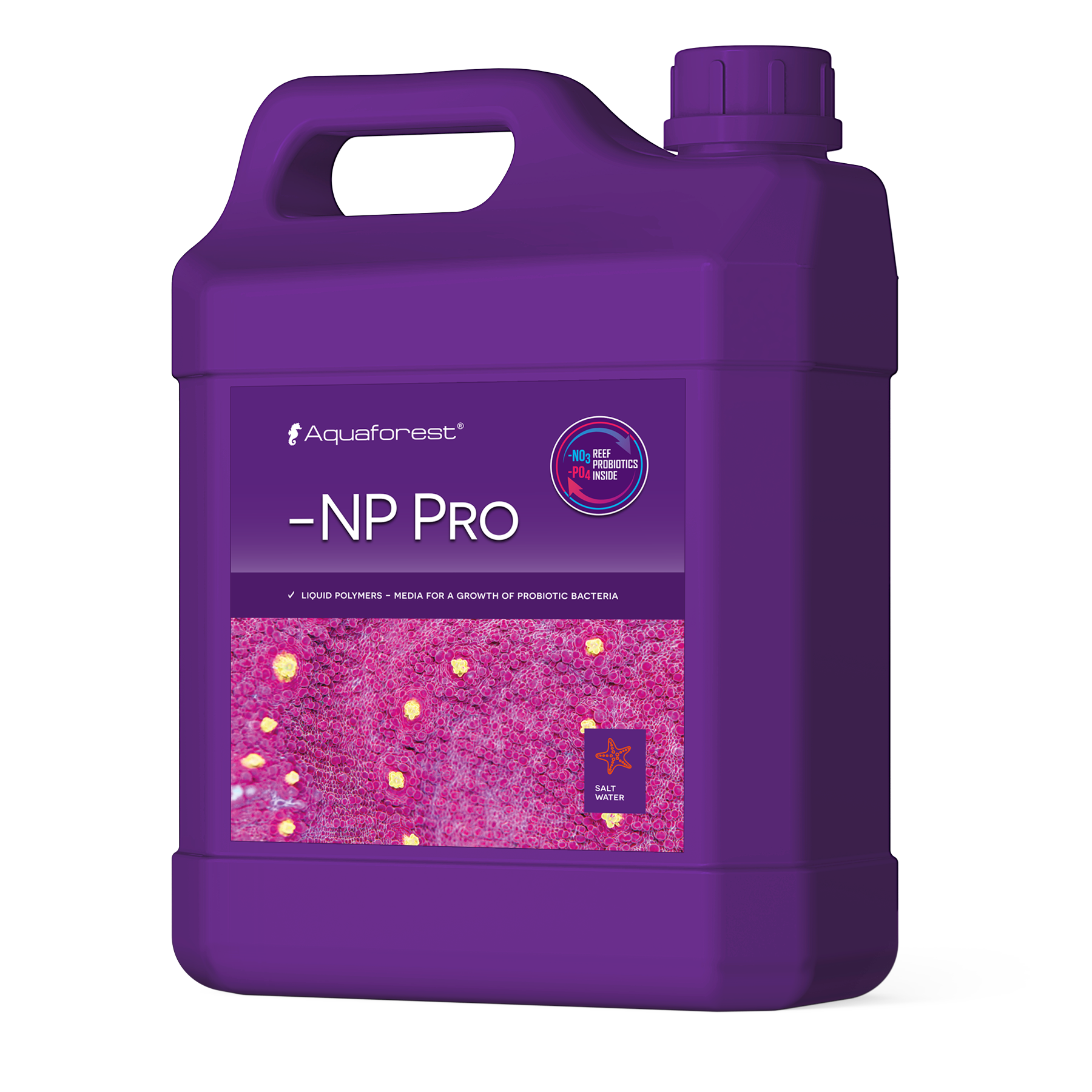 -NP Pro is a medium for probiotic bacteria designed for reef aquariums (Pro Bio S). The product contains biodegradable liquid polymers, which are an excellent source of carbon for probiotic bacteria. -NP Pro positively affects the organic mass distribution and reduces undesired NO3 and PO4 in the aquarium water. Contrary to typical polymers, -NP Pro as the only formulation available on the market does not require the use of specialized flow filters. -NP Pro accelerates the development and propagation of beneficial probiotic bacteria, which as the effect leads to the removal of harmful compounds such as nitrates and phosphates from the water. As a result of the high NO3 level, corals lose their color or turn brown. Regular use -NP Pro allows you to reduce the amount of nitrate to an undetectable level, providing the corals with optimal living conditions and excellent coloring. Wrong ratio of nitrate and phosphate in water also leads to the development of undesired algae and cyanobacteria, therefore the use of -NP Pro is recommended especially when diagnosing high values of both compounds. In combination with Pro Bio S, -NP Pro converts unwanted aquariums NO3 and PO4 into valuable bacteria, which is then absorbed by the corals providing them with natural food. DOSAGE: 5 ml per 100 liters (27 US gal) everyday. For the best efficiency we recommend using with Pro Bio S. Once opened store in the fridge, if the temperature exceeds 24°C (75°F).