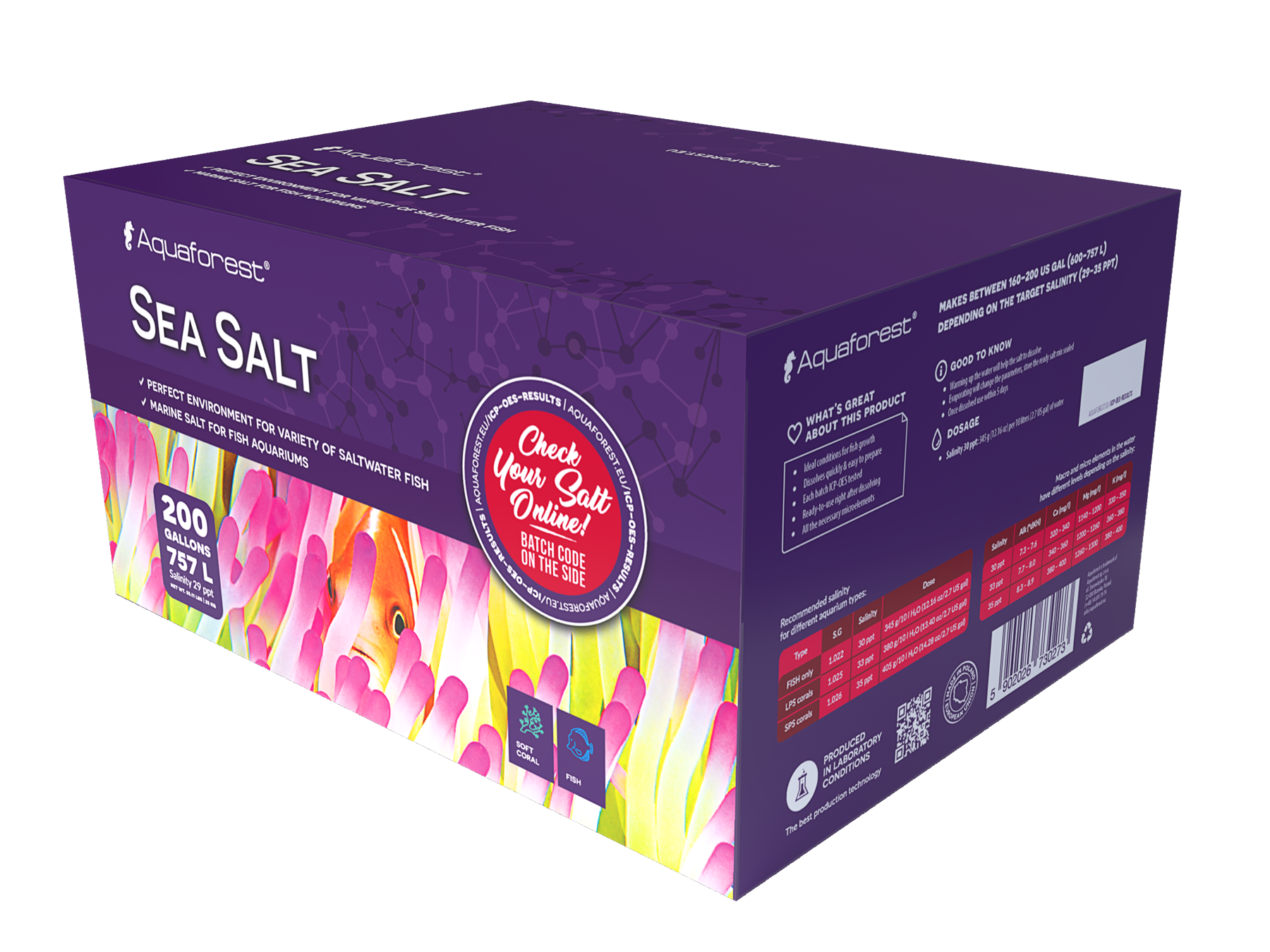 Synthetic marine salt for aquariums with fish and less delicate corals and invertebrates. When setting up new aquariums it is recommended that the first animals are placed no sooner than 10-14 days after filling the aquarium. After dissolving the salt, freshly prepared marine water can be used immediately.